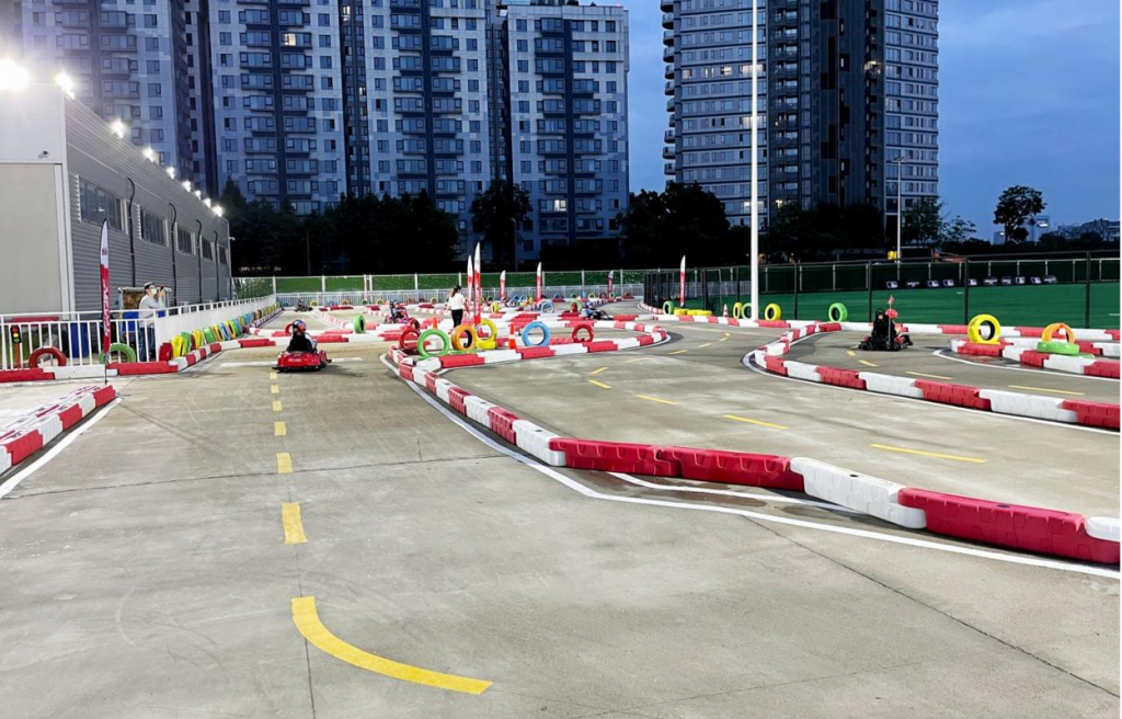 迈夺卡丁车占地面积1900m²,赛道长370米,专为3-16岁儿童及青少年开设,超拟真F1方程式竞赛体验,以儿童赛车为主题,为亲子家庭构建互动游玩乐园。超频三技术团队对现场进行实地勘查,充分利用周边建筑及灯杆,合理布局灯具安装,共计安装400W球场灯8盏和300W球场灯9盏。